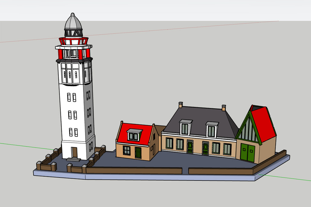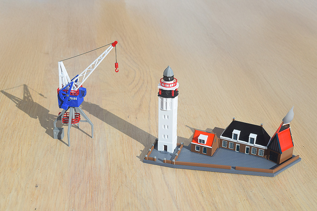 De havenkraan, vuurtoren maar ook de 4 huisjes die er tegenwoordig bij horen.
